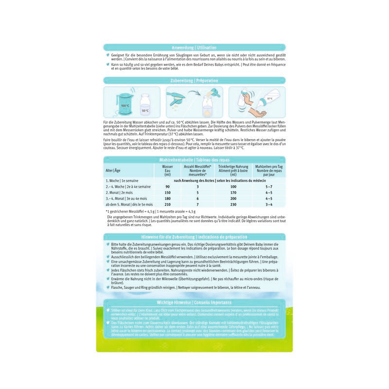 Diese Säuglingsmilch ist für die besondere Ernährung von Geburt an geeignet, wenn nicht oder nicht ausreichend gestillt werden kann.