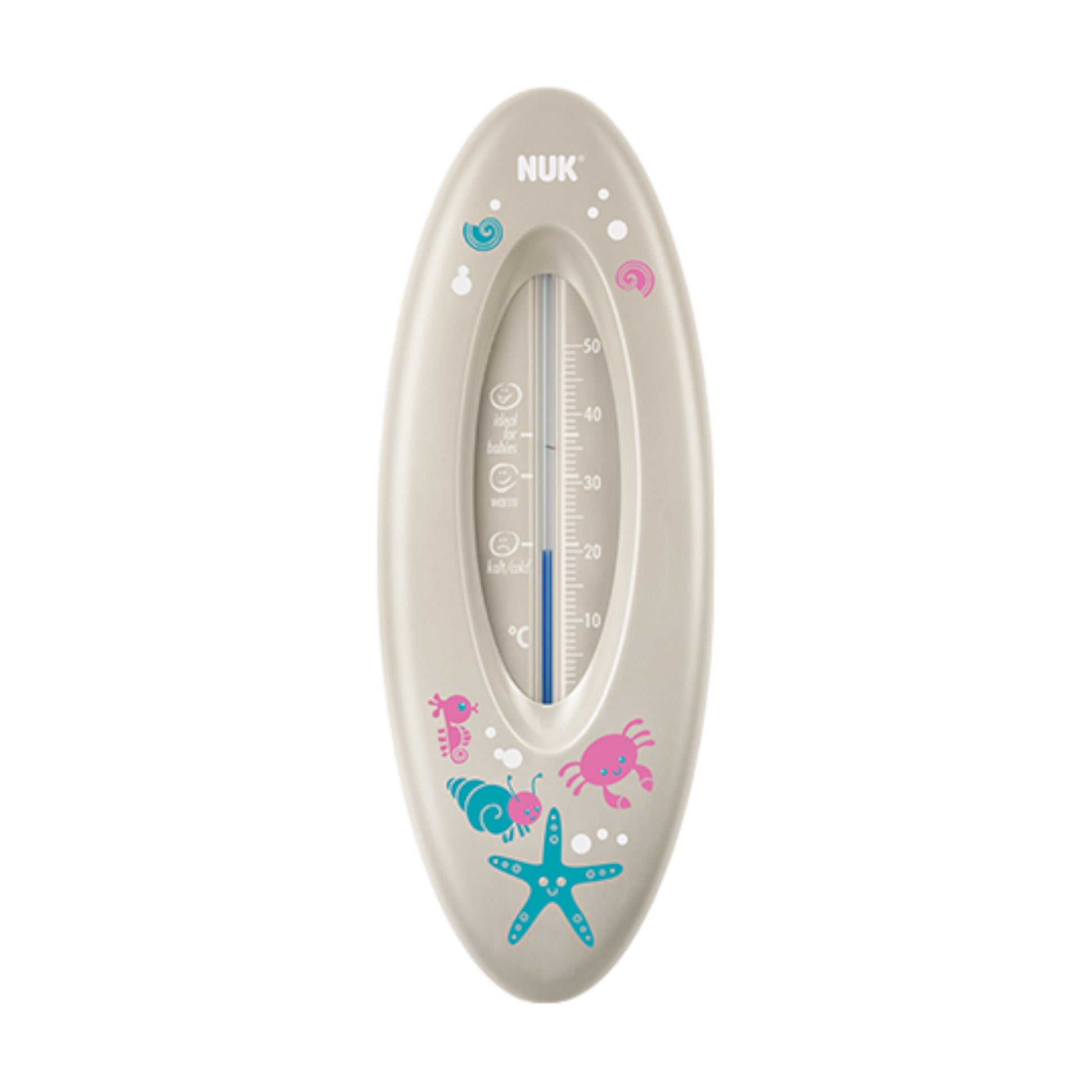 Das NUK Badethermometer sorgt für ein sicheres Badevergnügen. Es ist mit einer natürlichen und völlig unschädlichen Messflüssigkeit auf der Basis von Rapsöl gefüllt. Auf der übersichtlichen Temperatur-Skala kannst du erkennen, ob das Wasser für dein Baby die richtige Temperatur hat und das Baderitual beginnen kann. Das handliche Badethermometer ist aus bruchfestem und formstabilem Kunststoff in Deutschland gefertigt. Fröhliche Motive aus der Wasserwelt sorgen für das Extra an Spaß im nassen Element!