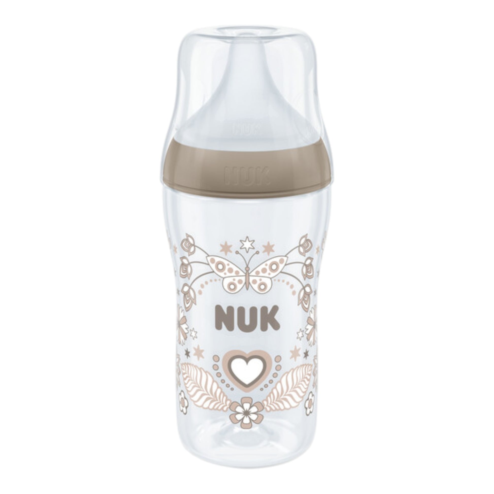 NUK Perfect Match Babyflasche, 260 ml, ab 3. Monate BPA-frei, Anti-Colic, mit Temperature Control, Beige